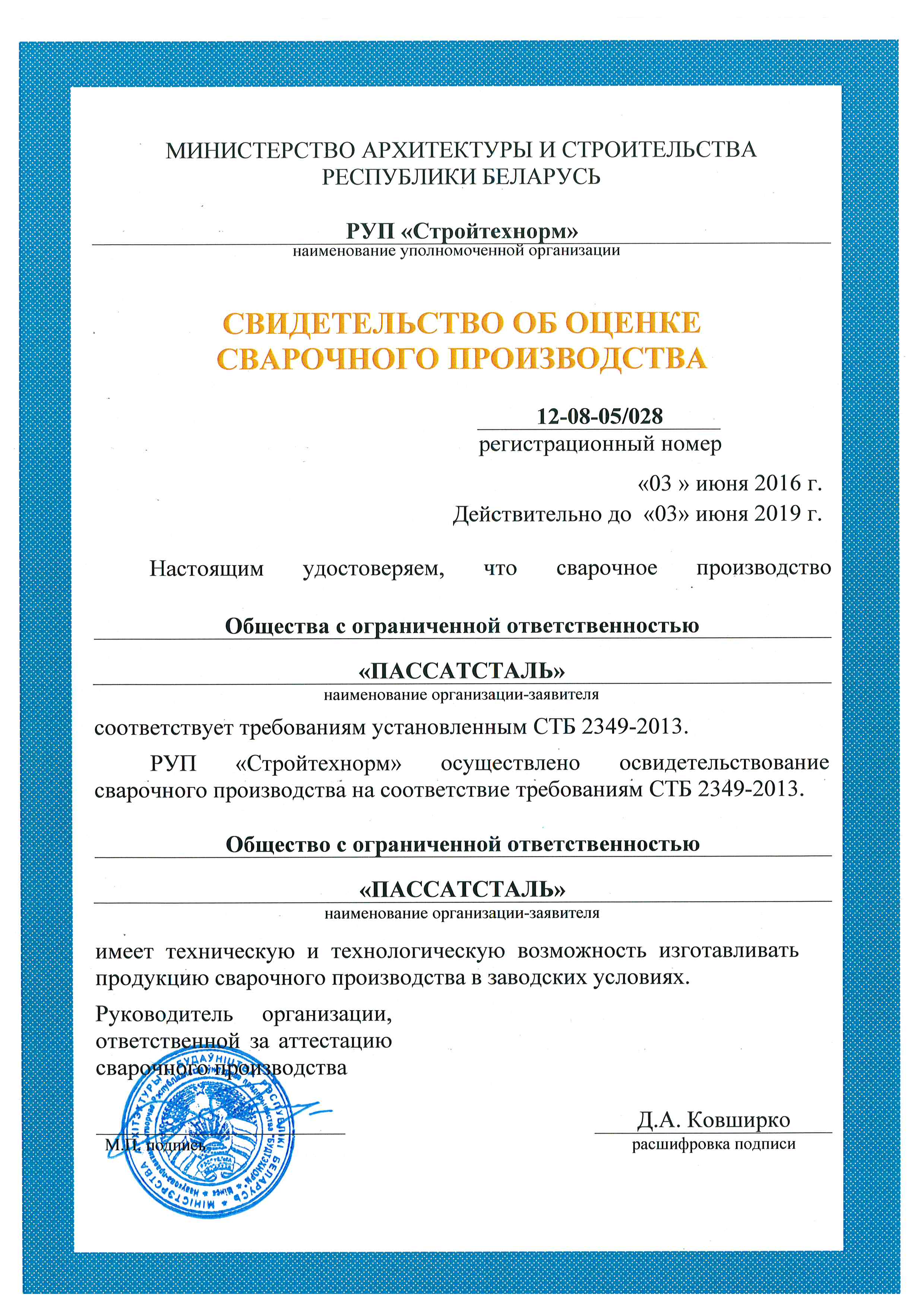 Сетрификат соответствия на арматурные, закладные и сварные изделия
