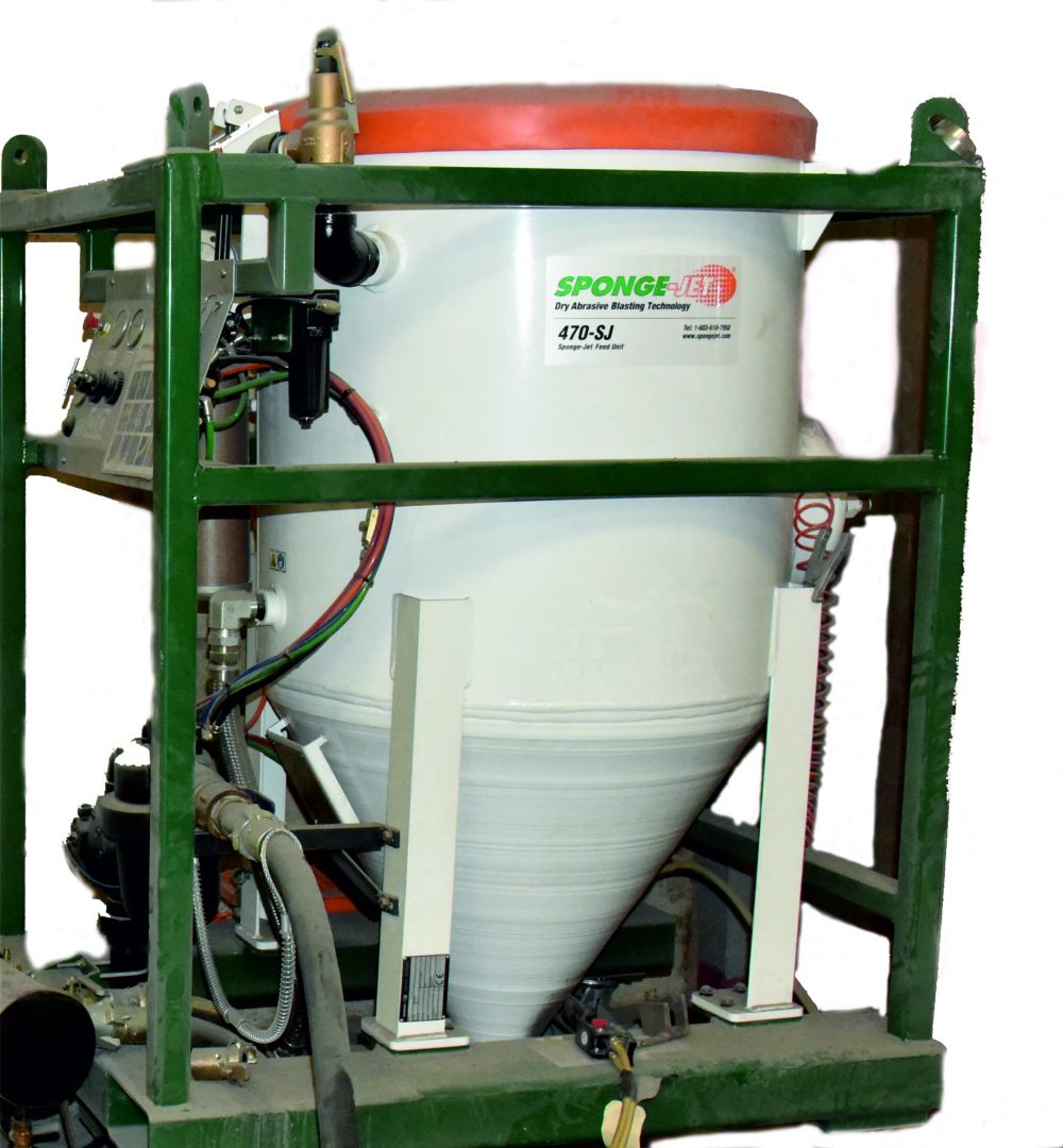 Основой системы Sponge-Jet является специальный абразивный материал Sponge Media. Данная технология сочетает в себе сдерживающую способность уретановой губки и эффективность очистки и профилирования традиционных материалов. Эластичные свойства абразивного материала Sponge Media позволяют его частицам сплющиваться при ударе, обнажая сам абразив. После отхода от поверхности частицы абразивного материала расширяются, создавая разряжение и улавливая большую часть того, что обычно становится атмосферными загрязнениями.