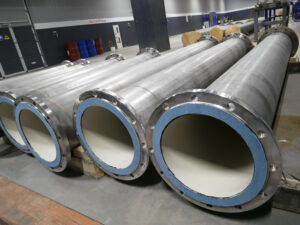 Stainless steel pipelines do not require additional external protection. The inner surface is subject to constant abrasive and chemical wear. For optimal protection, a Polyglass coating resistant to abrasive wear was applied by centrifugation.